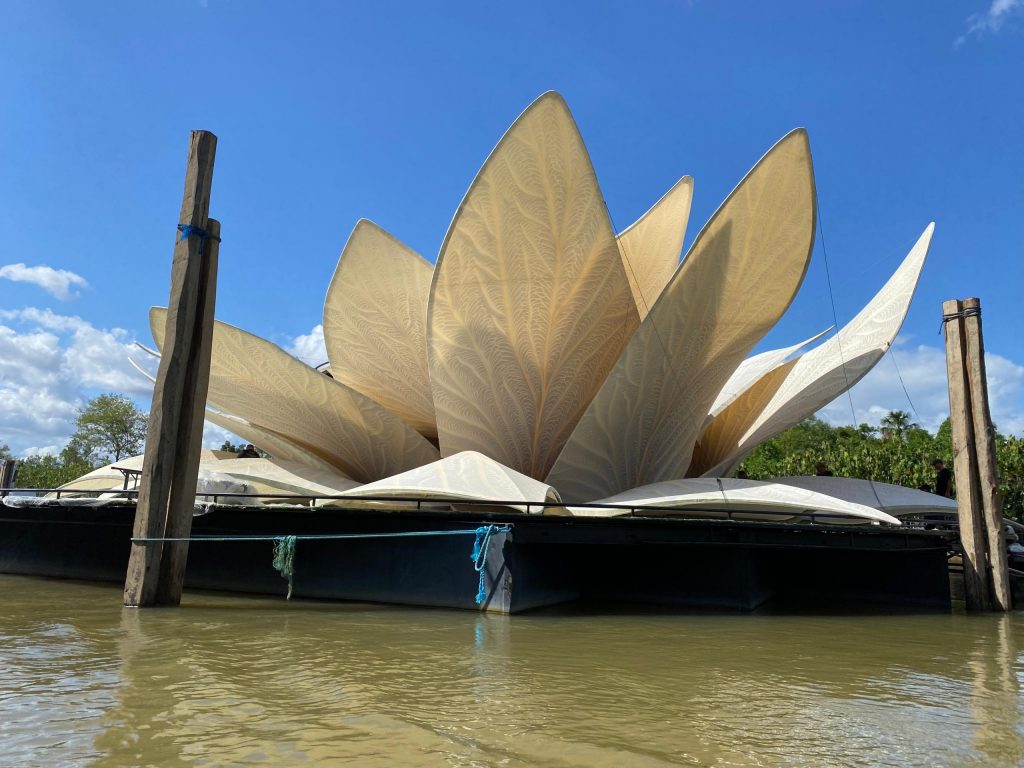 Palco flutuante em formato de vitória-régia no rio Guamá, em Belém.