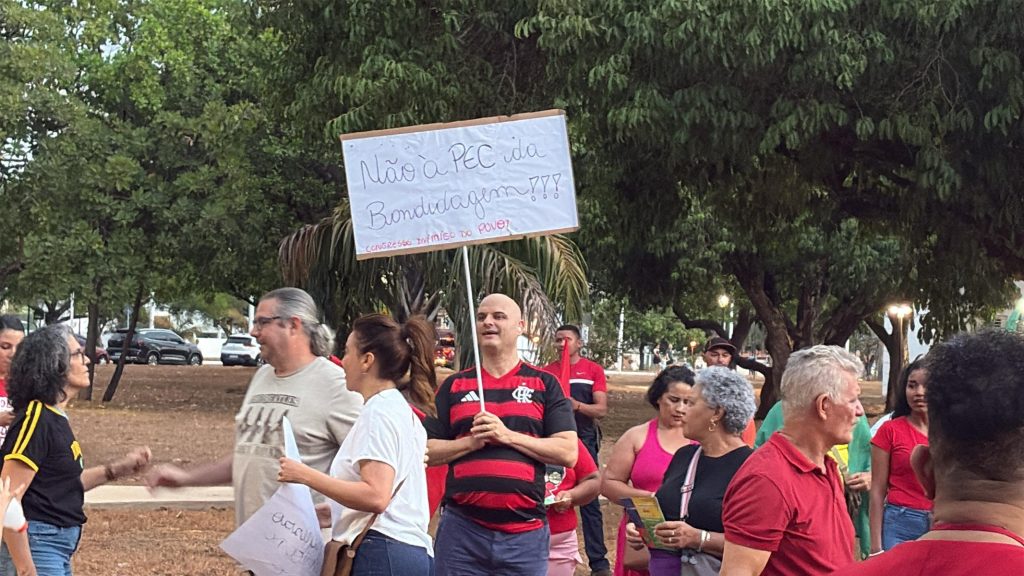 O ato também é contra o chamado PL da Anistia – proposta que perdoa condenados pelos atos golpistas do 8 de janeiro. Prioridade de partidos da oposição, a proposta de perdão aos condenados pelos atos de vandalismo em 2023 está em análise na Câmara dos Deputados.