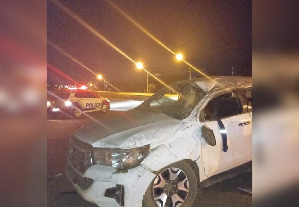 Caminhonete conduzida por suspeito de roubo em fazenda de Porto Nacional capotou durante fuga em Palmas