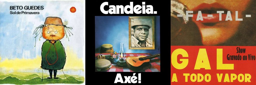 Capas dos álbuns ‘Sol de primavera’ (Beto Guedes, 1979), ‘Axé!’ (Candeia, 1978) e ‘Fa-Tal –Gal a todo vapor (Gal Costa, 1971)
