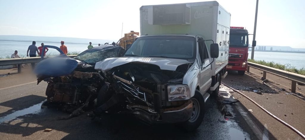 Nas imagens é possível ver a dinâmica da batida e a reação das pessoas que estavam no caminhão. O motorista da picape teve ferimentos graves e ficou preso às ferragens. Veja momento que picape atinge caminhão-baú na ponte entre Palmas e Luzimangues